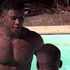 Les deux beaux garçons blacks se lutinent dans une piscine antillaise. Leurs muscles humides vous feront rêver.