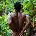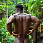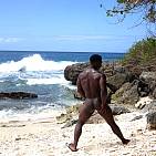 Le magnifique bodybuilder black joue de ses muscles sur une plage guadeloupéenne