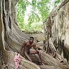 Handsome, slender and muscular young black man plays in an incredible ruined caribbean prison