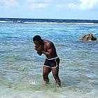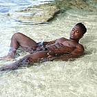 Le magnifique bodybuilder black joue de ses muscles sur une plage guadeloupéenne