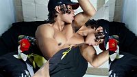 John enjoying himself on the sofa With every muscle tensed, this handsome black athlete is enjoying himself. 8 min Video
