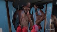 Komi the magnificent The beautiful black boy, with the musculature of dream, admire himself in front of a mirror and caresses himself for your pleasure. 12 min Video