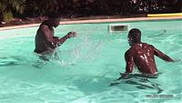 Che & Avrae hand games at the pool The two beautiful black boys are fighting in a Caribbean pool. Their wet muscles will make you dream. 11 min Video