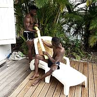 2 bomecs black jouent et combattent dans une piscine caribéenne