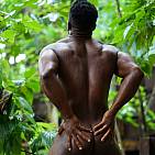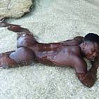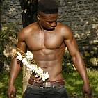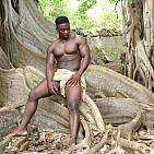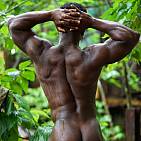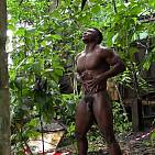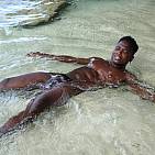 Le magnifique bodybuilder black joue de ses muscles sur une plage guadeloupéenne