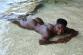 Le magnifique bodybuilder black joue de ses muscles sur une plage guadeloupéenne
