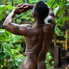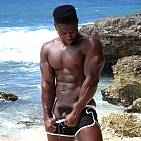 Le magnifique bodybuilder black joue de ses muscles sur une plage guadeloupéenne