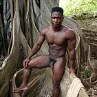 Le magnifique bodybuileur black joue avec ses muscles dans des décors de rêve