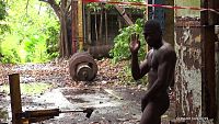 Che old factory The young muscular black plays for your pleasure in an old ruined sugar factory. 6 min Video