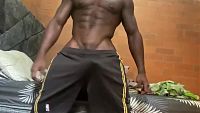 John pleasure in bed This fantastic black athlete pleases himself by caressing himself and flexing his steel muscles 5 min Video
